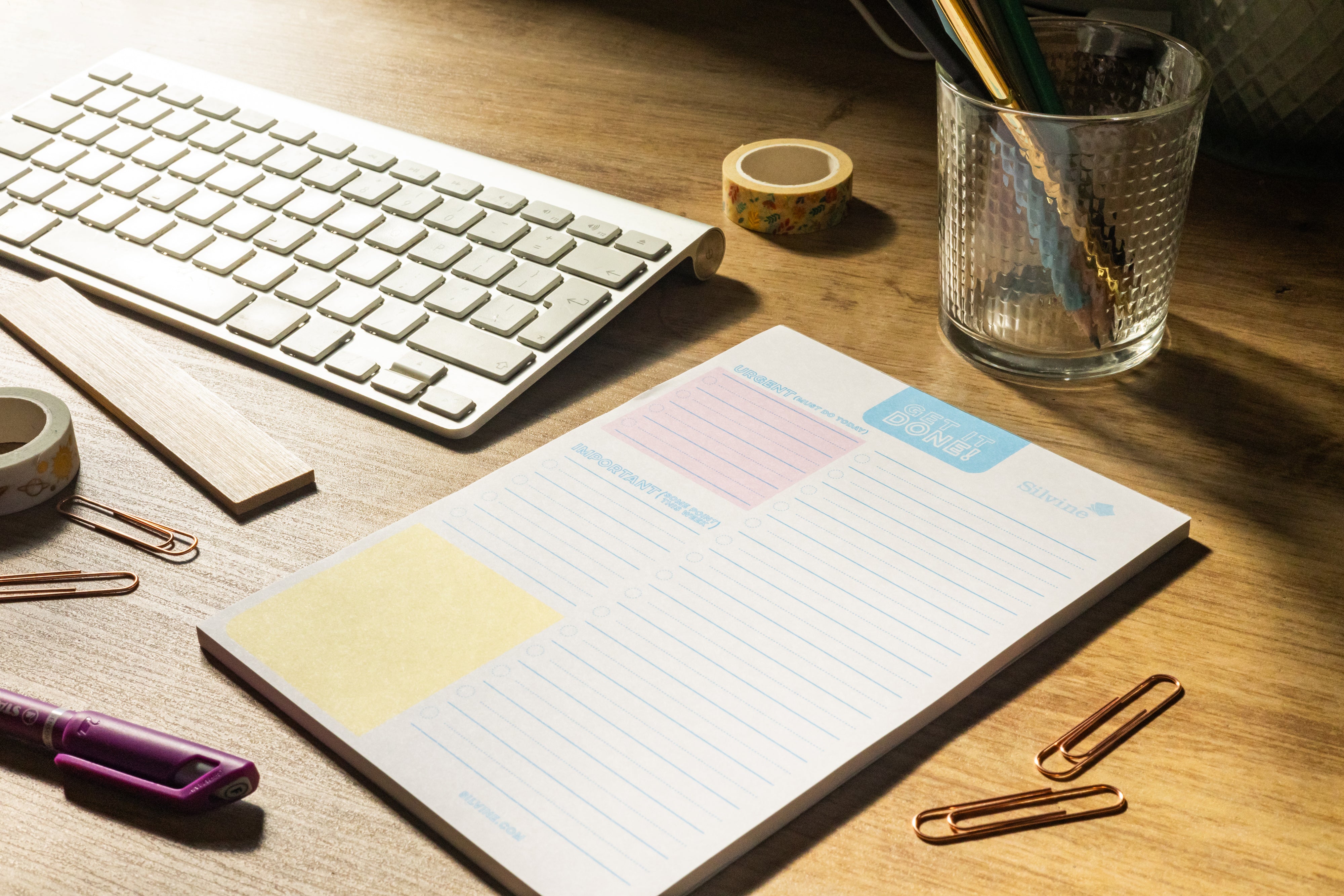 Productivity perfection - The A5 pad fits on any home or office desk and is ideal for scheduling all tasks - Big or small. Get it done! This design combines structure and flexibility rolled into one.
